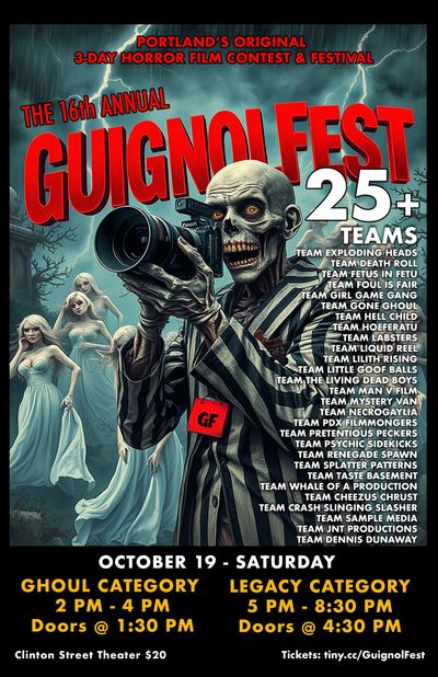 Please note: GuignolFest DOES NOT tolerate any unsportsmanlike behavior, negative/hurtful comments, defamation/slander/libel, discrimination, shaming, or rascism towards: GF media organizers and pages, events, artistic styles/process, teams, or film productions. Teams or its members displaying this conduct will be disqualified from the contest/event. Negative posts constitute being banned from the page by its administrators.